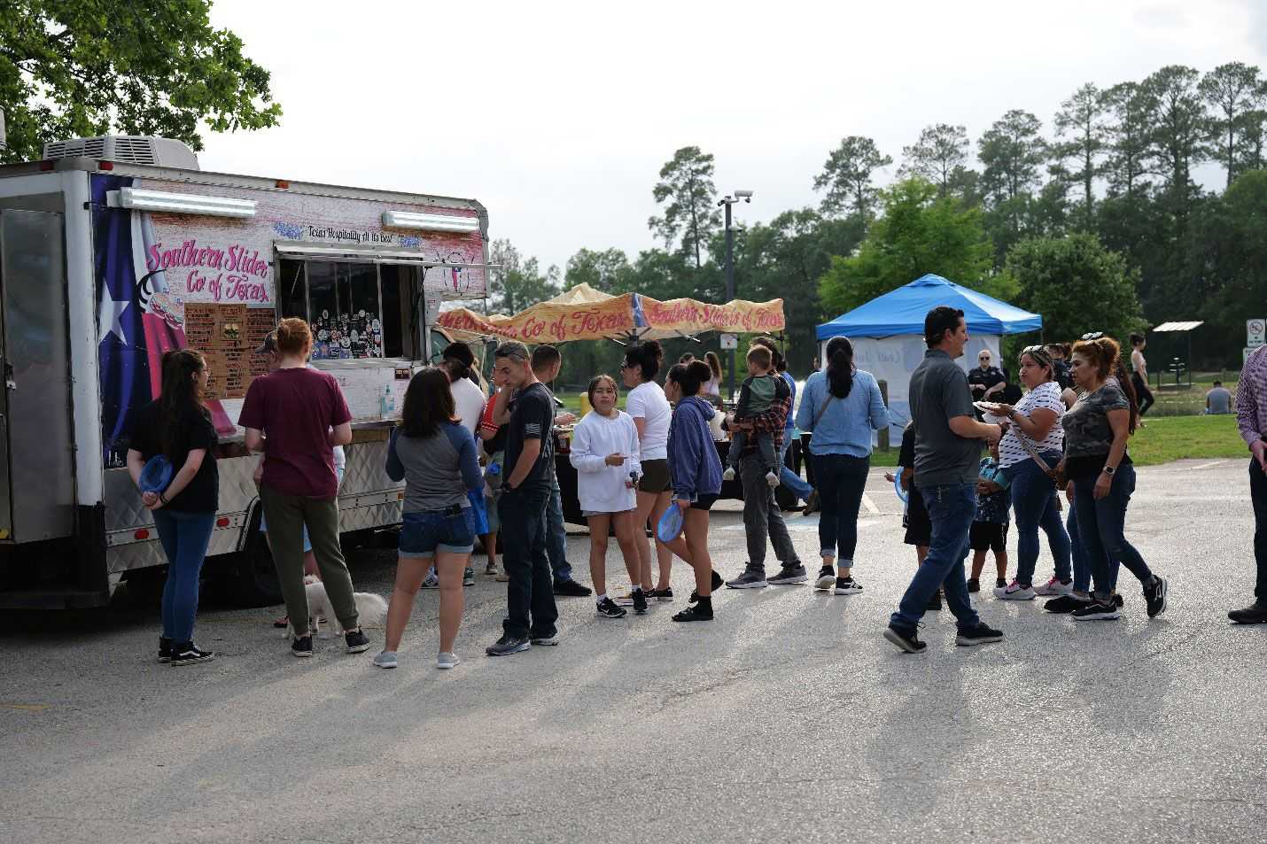 Residents will need to grab food tickets and get their hand stamped from the booth outside to get free food.
